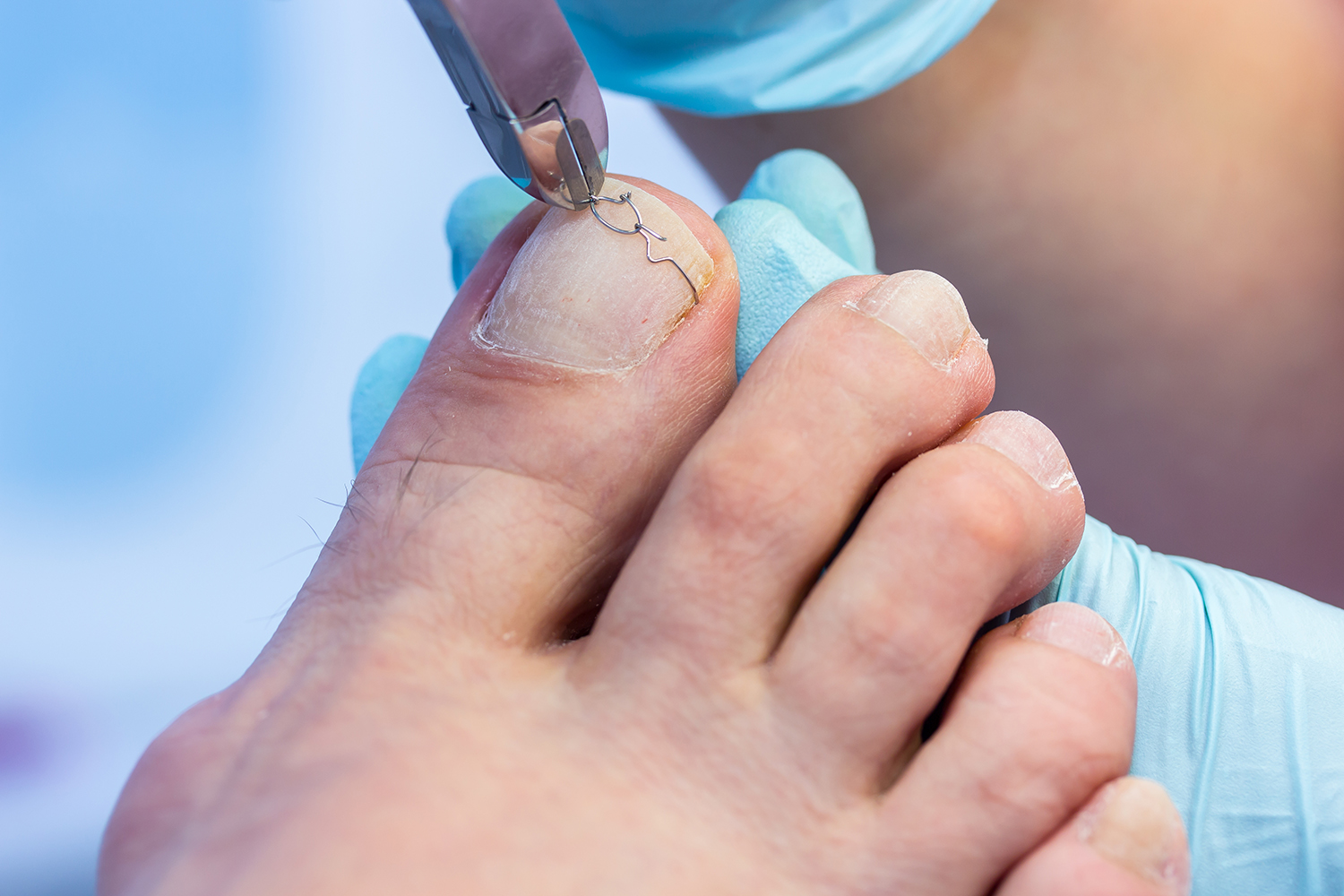 Unsere speziellen Nagelspangen sorgen für eine schmerzfreie Korrektur eingewachsener oder deformierter Nägel.